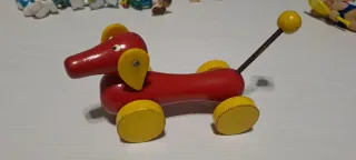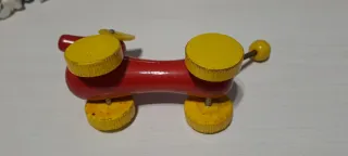 giocattolo vintage. - Realizzato in legno. - Colore rosso e giallo. - Design a forma di bassotto.