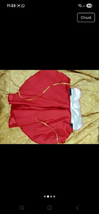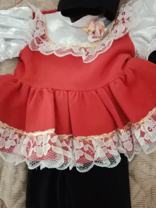 Vestito di carnevale per bambina a tema Minnie. - Colore rosso e bianco. - Dettagli in pizzo. - Include copriscarpe gialli con fiocchi rossi. - misura 24-36 mesi 92cm