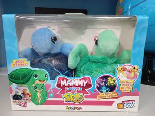 Vendo due teneri peluche della linea Mammy Surprise Turtle. Sono morbidissimi e colorati! - Set di 2 tartarughe, una verde e una blu oppure rosa e nocciola - Sono inclusi nella confezione originale. - Perfette come regalo per bambini.