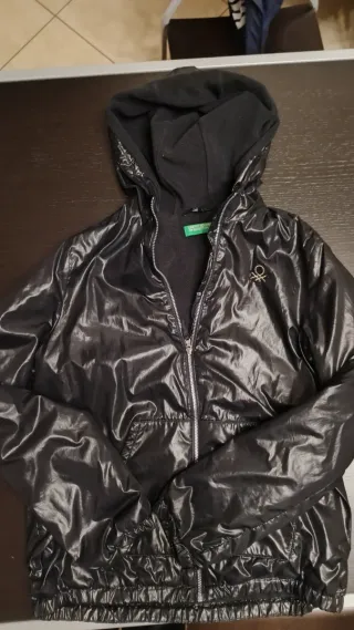 Giubbotto nero con cappuccio, perfetto per le ragazze. - Tessuto lucido e impermeabile. - Logo United Colors of Benetton ricamato sul petto. - Chiusura con zip frontale. - Tasche laterali. - Polsini e fondo elasticizzati. -interno in pile