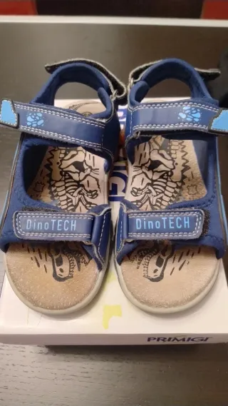 Sandali estivi per bambino Primigi, modello DinoTECH. - Colore blu - Chiusura a velcro - Fantasia dinosauri sulla soletta - Misura 29
