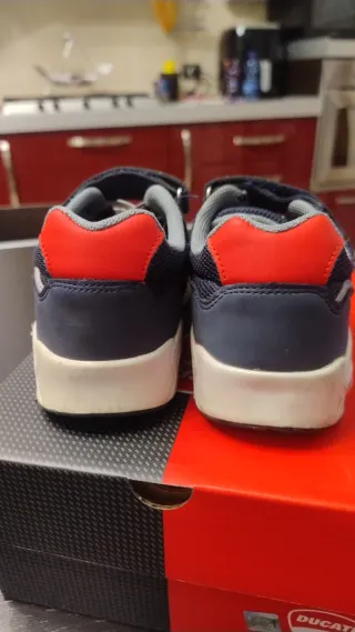 Scarpe da bambino con chiusura a velcro e lacci. - Logo DUCATI rosso. - Tessuto in mesh traspirante. - Inserti in camoscio. Usurati nella parte camosciata Misura 31