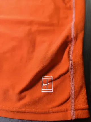 Canottiera sportiva Nike, modello di Rafael Nadal. Colore arancione vivace con dettagli grafici. - Logo Nike Swoosh bianco sul petto. - Inserti laterali con motivo grafico. - Tessuto tecnico Nike Fit. Taglia 8/10