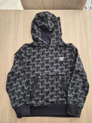 Felpa con cappuccio Arena, perfetta per bambini di 8 anni. Presenta una fantasia geometrica moderna. - Cappuccio integrato. - Tasca frontale a marsupio. - Polsini e fondo a costine.