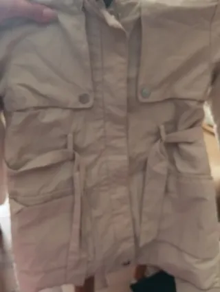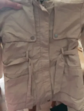 Giacca a vento color beige per bambina. - Cappuccio integrato. - Chiusura con bottoni a pressione. - Tasche frontali con patta. - Cintura in vita. Brand zara Taglia 4 anni
