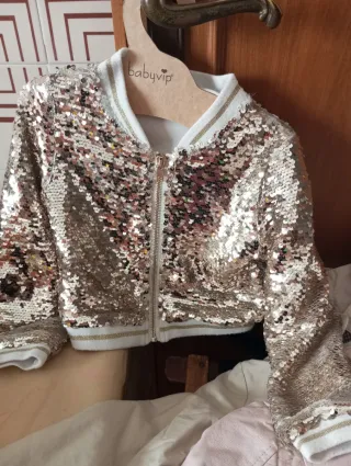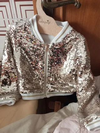 Giacchetto scintillante con paillettes, perfetto per le occasioni speciali. - Taglia 4 anni. - Design alla moda con paillettes. - Chiusura con zip.
