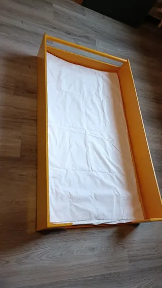 Culla per bambini con 6 mesi di utilizzo, ideale per accompagnare la crescita del piccolo. Può essere usata come culla, ha il kit per il lettino per essere utilizzata attaccata al letto e può diventare un letto Montessori se si rimuovono le gambe. Il materasso è come nuovo. Il prezzo originale è di 300 euro. Posso regalare un protettore, la coperta verde nella foto e 2 cuscini quadrati se siete interessati. Le gambe hanno subito qualche danno durante lo smontaggio, possono essere riparate con colla per legno o sostituite.