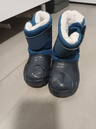 Scarponcini da bambino Quechua, ideali per le giornate fredde. - Colore blu con interno bianco in pile. - Chiusura con velcro. - Suola in gomma antiscivolo.