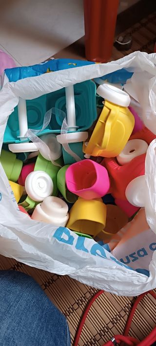 Bellissimo gioco di costruzioni in gomma colorata, perfetto per i più piccoli! - Il set include diversi pezzi colorati, tra cui carrozze e ruote. - I pezzi sono morbidi e facili da impugnare. - Ideale per stimolare la creatività e la coordinazione occhio-mano.