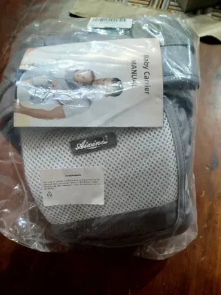 Marsupio per neonato, ancora imballato nella sua confezione originale. - Design moderno e funzionale. - Materiali confortevoli per il bambino. - Etichetta del marchio Aisin's visibile.