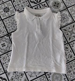 Bellissima maglietta polo bianca per bimba. - Marca: Piazza Italia - Colore: Bianco - Taglia: 3-4 anni - Maniche corte a volant