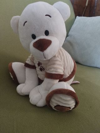 Bellissimo orsetto di peluche, tenero e morbido. Perfetto per coccole! - Colore beige e marrone - Vestitino a righe - Ottimo stato