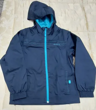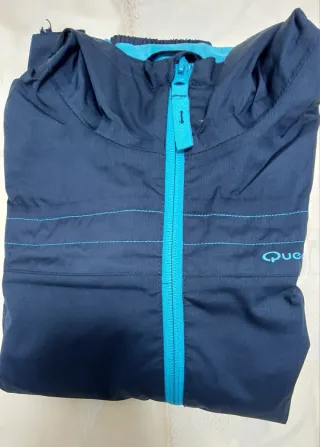 Giacca a vento Quechua di colore blu. - Zip centrale. - Cuciture a contrasto.