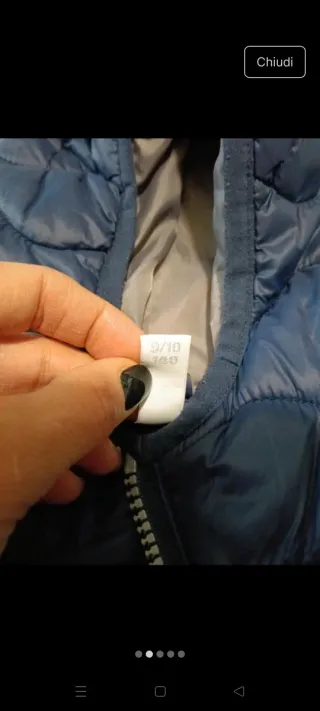 Felpa imbottita nuova con cappuccio, taglia 12/13 anni. - Tessuto esterno nero trapuntato. - Maniche e cappuccio in tessuto grigio melange. - Chiusura frontale con zip.