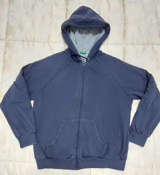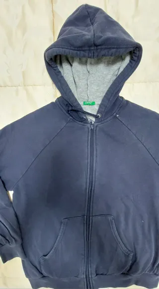 Felpa con cappuccio di colore blu Benetton. Interno in morbido pile.