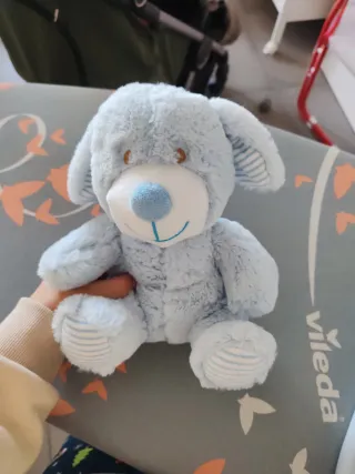 Morbido peluche a forma di cane, perfetto per i più piccoli. Il suo colore azzurro lo rende un compagno allegro. - Materiale soffice al tatto. - Dettagli ricamati sul muso. - Orecchie con righe azzurre.