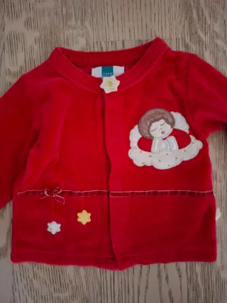 Cardigan rosso in velluto Thun per neonato. - Taglia 6/9 mesi. - Applicazione di un angelo su una nuvola. - Dettagli con fiocco e stelline.