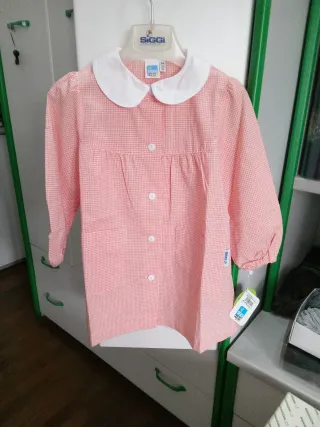 Grembiulino Siggi per la scuola materna, ideale per bambina di 3 anni, disponibili anche altri colori. - Fantasia a quadretti rosa. - Colletto bianco. - Chiusura con bottoni. - Maniche lunghe con elastico ai polsi.