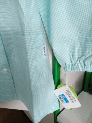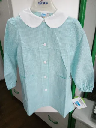 Grembiuli Siggi per la scuola materna, per bambina e per bambino, vari colori e taglie disponibili. - Fantasia a quadretti azzurri. - Colletto bianco. - Chiusura con bottoni. - Tasche applicate sul davanti. - Polsini elasticizzati.