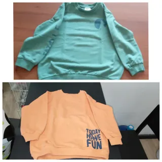 2 felpe Prenatal, in morbido cotone garzato, taglia 104 cm (3-4 anni). Perfette per la mezza stagione. - Ottime condizioni - Colore verde e arancio - 100% cotone
