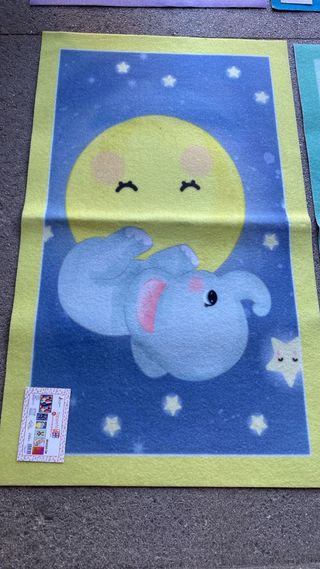 Tappeto per bambini con simpatici disegni, misura 50x80cm. - Design con palloncini colorati. - Design con elefantino e luna.