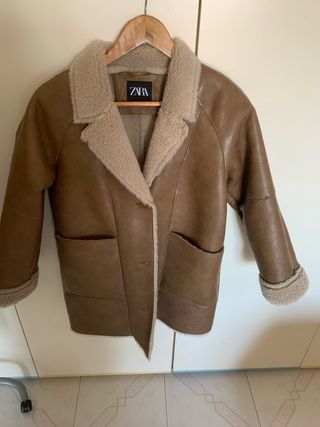 Caldo montone Zara per bambina, perfetto per le giornate più fredde. - Colore marrone. - Fodera interna in pelliccia sintetica color crema. - Chiusura con bottoni. - Tasche laterali.
