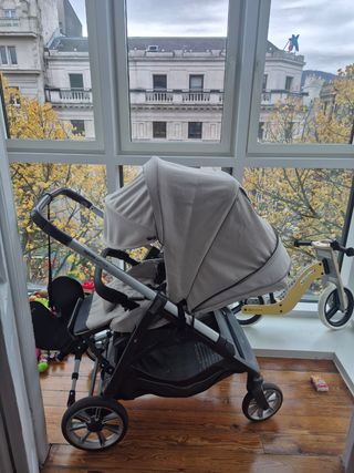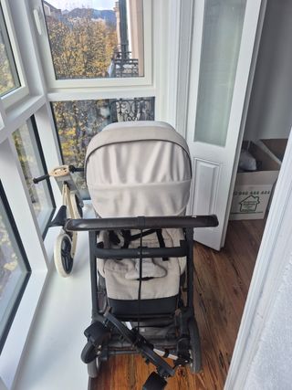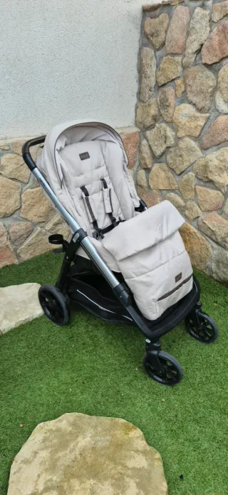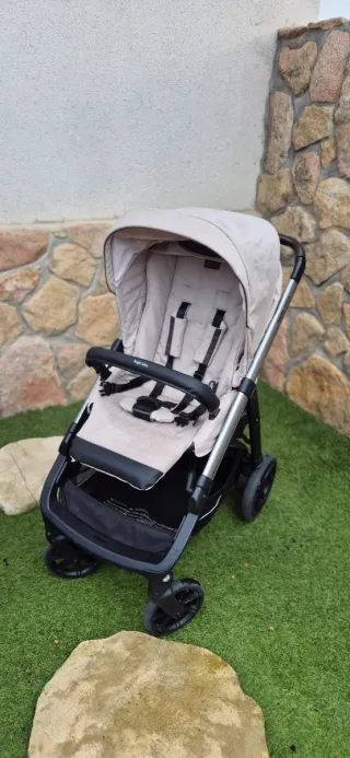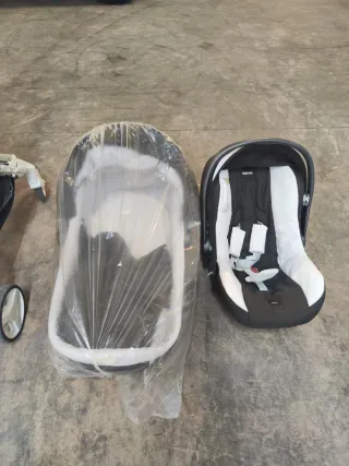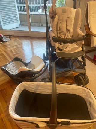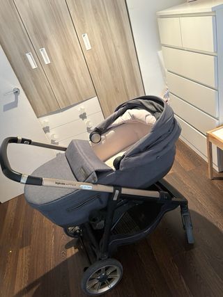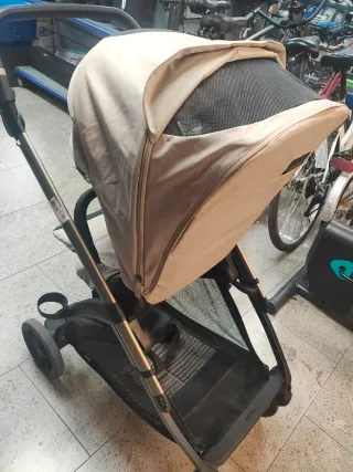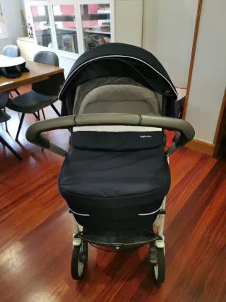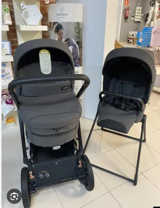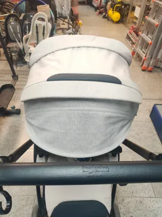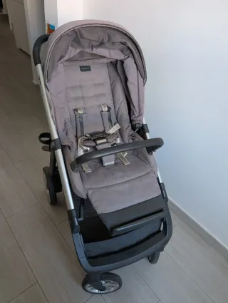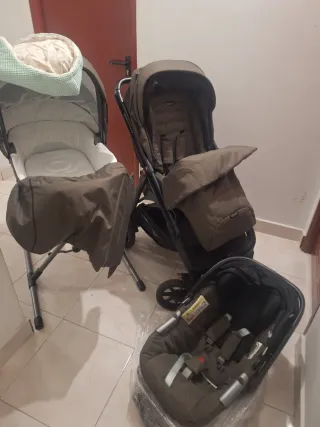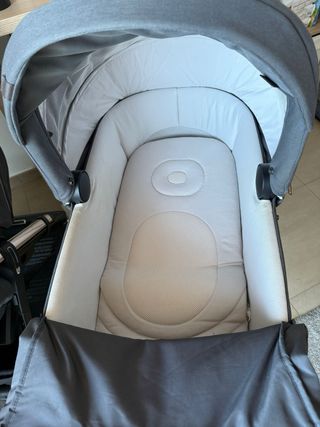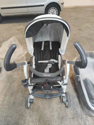 Passeggino Inglesina modello Áptica. Colore grigio. Capota estensibile. Cesta di stoccaggio. Ruote anteriori girevoli. Impugnatura regolabile. Si vende il pacchetto completo Inglesina. Include: ovetto per neonati, piedini per ovetto, seggiolino per cambiare quando sono più grandi e, in più, NUOVI e non usati, il coperchio protettivo per la pioggia, e ho acquistato un materassino per l'ovetto che non abbiamo usato, sigillato, per poter usare l'ovetto dal primo minuto, poiché quello fornito sembra più usato. È come nuovo, poiché il seggiolino è stato usato poco.