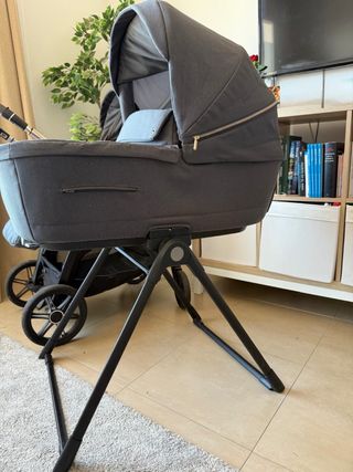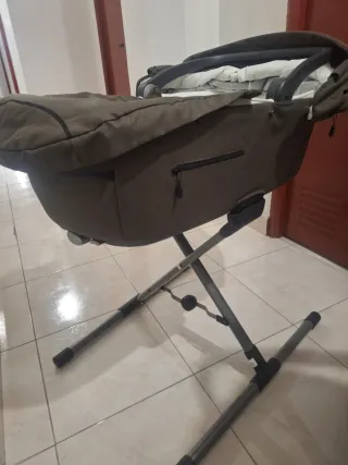 Supporto pieghevole del marchio Inglesina. Compatibile con ovetto, passeggino e marsupio (maxicosi). Struttura metallica resistente. Facile da piegare e trasportare. Praticamente nuovo, usato pochissimo.