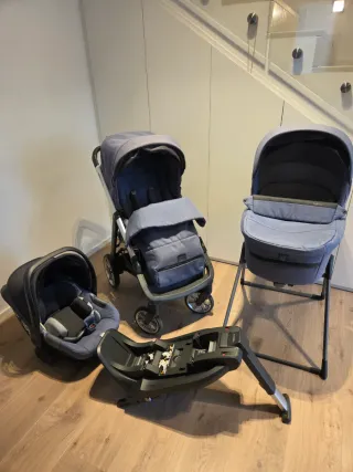 Set di passeggino a tre pezzi della marca Inglesina. Include ovetto, passeggino e seggiolino auto. Ovetto spazioso e confortevole. Passeggino reclinabile. Seggiolino auto omologato.