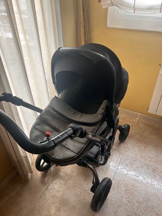 Si vende set di passeggino e ovetto Jané Crosslight Pro in colore nero. Ideale per l'uso quotidiano. - Telaio leggero e manovrabile. - Ovetto confortevole per i primi mesi. - Sedile reclinabile e reversibile. - Include borsa. - Ruote per tutti i terreni.