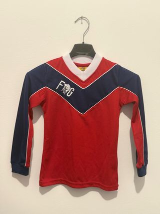 Maglia a maniche lunghe per bambino/a del marchio Frankie Garage. - Colore rosso, blu e bianco. - Logo F G sul petto.
