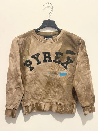 Felpa Pyrex con stampa Pyrex sul davanti e fantasia tie-dye. - Taglia 8 anni. - Colore marrone e beige. - Dettagli colorati a spruzzo.