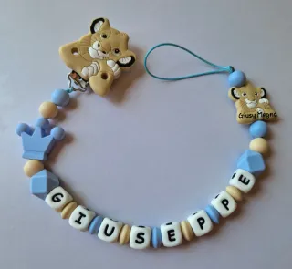 Catenella portaciuccio personalizzabile con nome. - Realizzata in silicone. - Decorata con personaggi a tema (tanti clip e charm disponibili) - Include perline colorate a scelta vostra