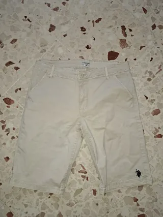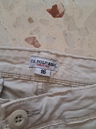 Pantaloncino beige del marchio U.S. Polo Assn. - Taglia 16 anni. - Logo del cavallo ricamato sul fondo gamba destro.
