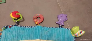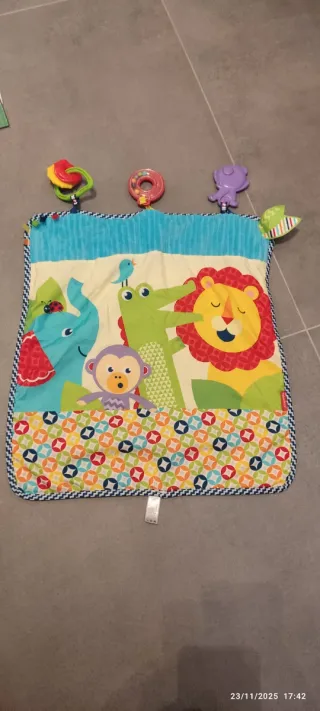 Copertina colorata e divertente per passeggino o ovetto, ideale per intrattenere il tuo bambino. - Fantasia con animali della giungla: elefante, scimmia, coccodrillo e leone. - Bordi con fantasie geometriche vivaci. - Dotata di giochi pendenti per stimolare la motricità.