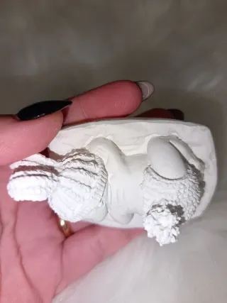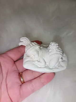 Deliziosa statuetta di un bimbo addormentato, realizzata in gesso ceramico. Perfetta per decorare o come idea regalo. - Materiale: Gesso ceramico. - Design: Bimbo in posizione fetale con cappellino.
