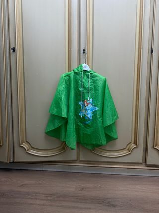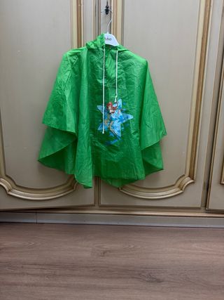 Vendo Poncho antipioggia per bambini, taglia indicativa sembra 3-5 anni. Colore verde brillante delle Winx club materiale leggero e impermeabile, perfetto per giornate piovose o gite all'aperto. Chiusura con bottoni a pressione, cappuccio incluso. Sul fronte è presente una simpatica stampa con personaggio cartoon e la scritta "Bloom", , ideale per piccoli sognatori! In buone condizioni, senza strappi né macchie. Include occhielli e cuciture rinforzate per una maggiore dura.
