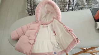 Caldo giubbottino rosa Chicco con cappuccio bordato in pelliccia sintetica, perfetto per i primi mesi. - Chiusura con zip. - Fodera interna in morbido pile. - Dettagli con fiocchi sulle tasche.