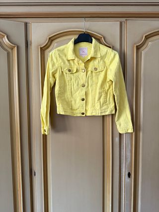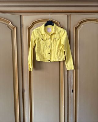 Giacca cropped in denim giallo brillante, taglia 7-8 anni, firmata Piazza Italia Girls Collection. Modello con bottoni metallici, tasche frontali con patta e cuciture verticali che valorizzano la linea. Composizione: 98% cotone, 2% elastan - comoda e resistente. Condizioni ottime, indossata pochissimo. Perfetta per dare colore a ogni outfit, dalla scuola alle passeggiate in città. Prezzo trattabile