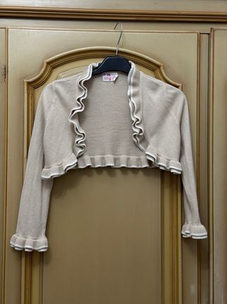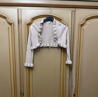 Vendo Copri cuore corto Prénatal, taglia 107/113 cm (5-6 anni), in 100% cotone beige. Modello copri cuore con maniche lunghe e delicati volant su collo, polsini e fondo. Ideale per completare outfit eleganti o casual. Usato pochissimo, in ottime condizioni. • Taglia: 107/113 cm (5-6 anni) • Materiale: 100% cotone * Colore: Beige chiaro Brand: Prénatal Prezzo trattabile