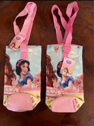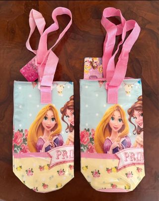 Vendo 2 Porta borraccia termica della Disney Princess per bambine altezza dentro per borracce 25,5 cm , manico rosa in tessuto nuove con etichetta