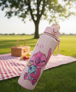 Borraccia con stampa di Lilo & Stitch, perfetta per i fan del personaggio. Il design è vivace e colorato. - Colore: Rosa - Stampa: Lilo & Stitch con bambola - Materiale: Metallo