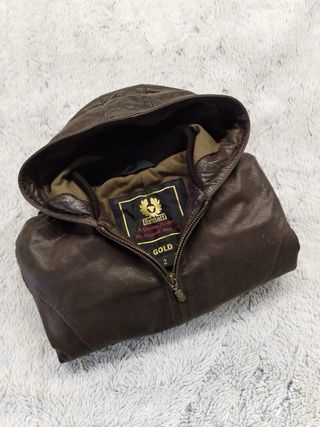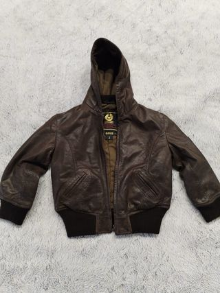 Bellissimo giubbotto 100% pelle Belstaff per bambino. - Taglia 2 anni. - Colore marrone scuro. - Cappuccio integrato. - Fodera interna. - Zip frontale. - Tasche laterali. - Polsini e fondo elasticizzati.