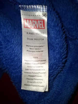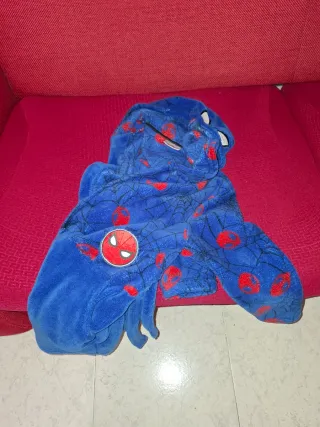 Morbida vestaglia con cappuccio a tema Spiderman, taglia 8 anni. Perfetta per i piccoli fan dell'eroe. - Colore blu con stampa di ragnatele e maschere di Spiderman. - Patch rotonda di Spiderman sul petto. - Tessuto in pile caldo e confortevole.