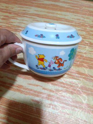Tazza con simpatico disegno di Winnie the Pooh e amici. - Personaggi: Winnie the Pooh, Tigro, Pimpi. - Colore: Azzurro con decorazioni. - Include coperchio.