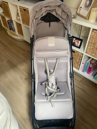 Passeggino Inglesina Quid2 in colore beige. Ha un piccolo foro nel cestino appena visibile, visibile in foto, una piccola bruciatura. Non negoziabile. Mi è costato 260€. Capottina estensibile. Imbracatura di sicurezza a 5 punti. Ruote anteriori girevoli.