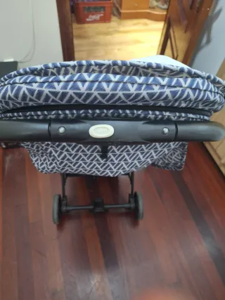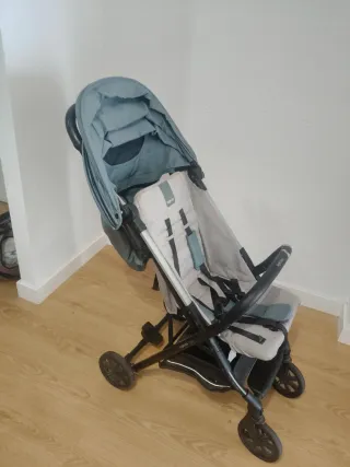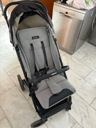 Passeggino per neonati della marca Inglesina, color grigio e blu. Si piega da solo. Peso 7kg. Massimo comfort per il bambino. - Tetto estensibile. - Sedile imbottito. - Reclinabile per far sdraiare completamente il bambino. - Cintura di sicurezza a 5 punti. - Ruote anteriori girevoli. - Piegatura compatta. Ideale per auto con baule piccolo e per viaggiare poiché si adatta al compartimento delle compagnie aeree low cost. Passeggino molto leggero e facile da trasportare. È in ottime condizioni, con alcune adesivi nella parte anteriore, dove il bambino si aggrappa, e un leggero sollevamento dell'imbottitura, ma non si nota quasi.