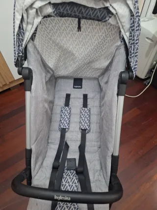 Passeggino della marca Inglesina. Colore grigio e nero. Include un'imbracatura di sicurezza. Design imbottito.