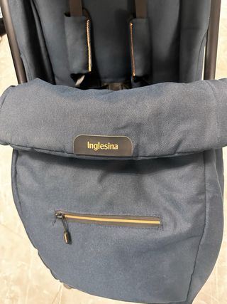 Passeggino della marca Inglesina. Un design elegante e funzionale per le passeggiate. Include la copertura mostrata nella foto. Si inclina completamente per un miglior riposo del bambino. Etichetta del marchio visibile.