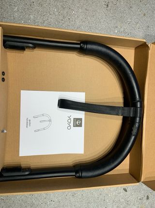 Maniglia di ricambio per passeggino Yoyo della marca STOKKE. Telaio nero. La maniglia è in pelle sintetica, ha zone usurate come mostrato nelle foto. Include libretto di istruzioni, viti e l'attrezzo per il cambio.